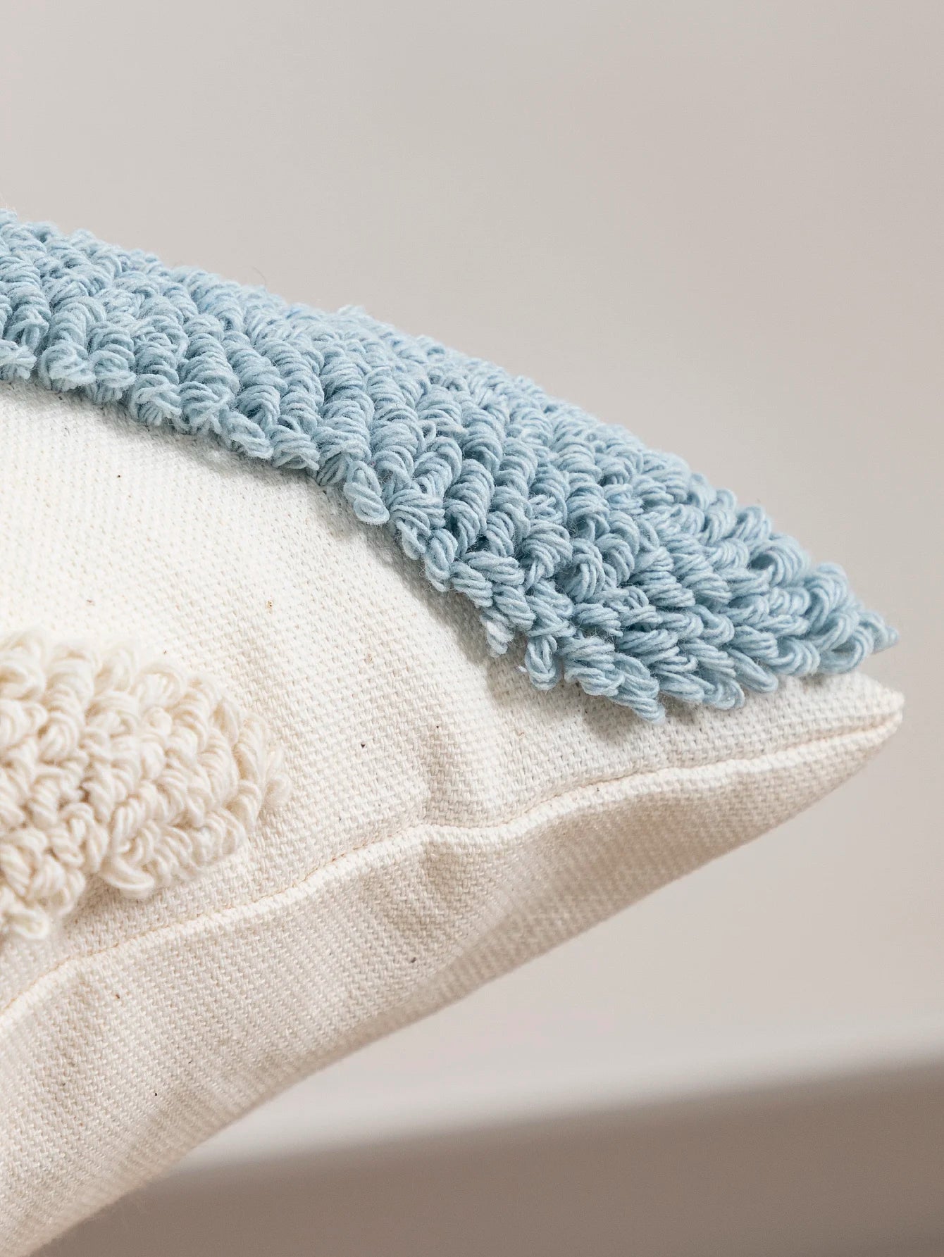 Premium boho geometric loop velvet pillow cover perfect for modern and bohemian decorating. Unique blue and white pattern adds sophisticated texture to sofas, beds, and living spaces.