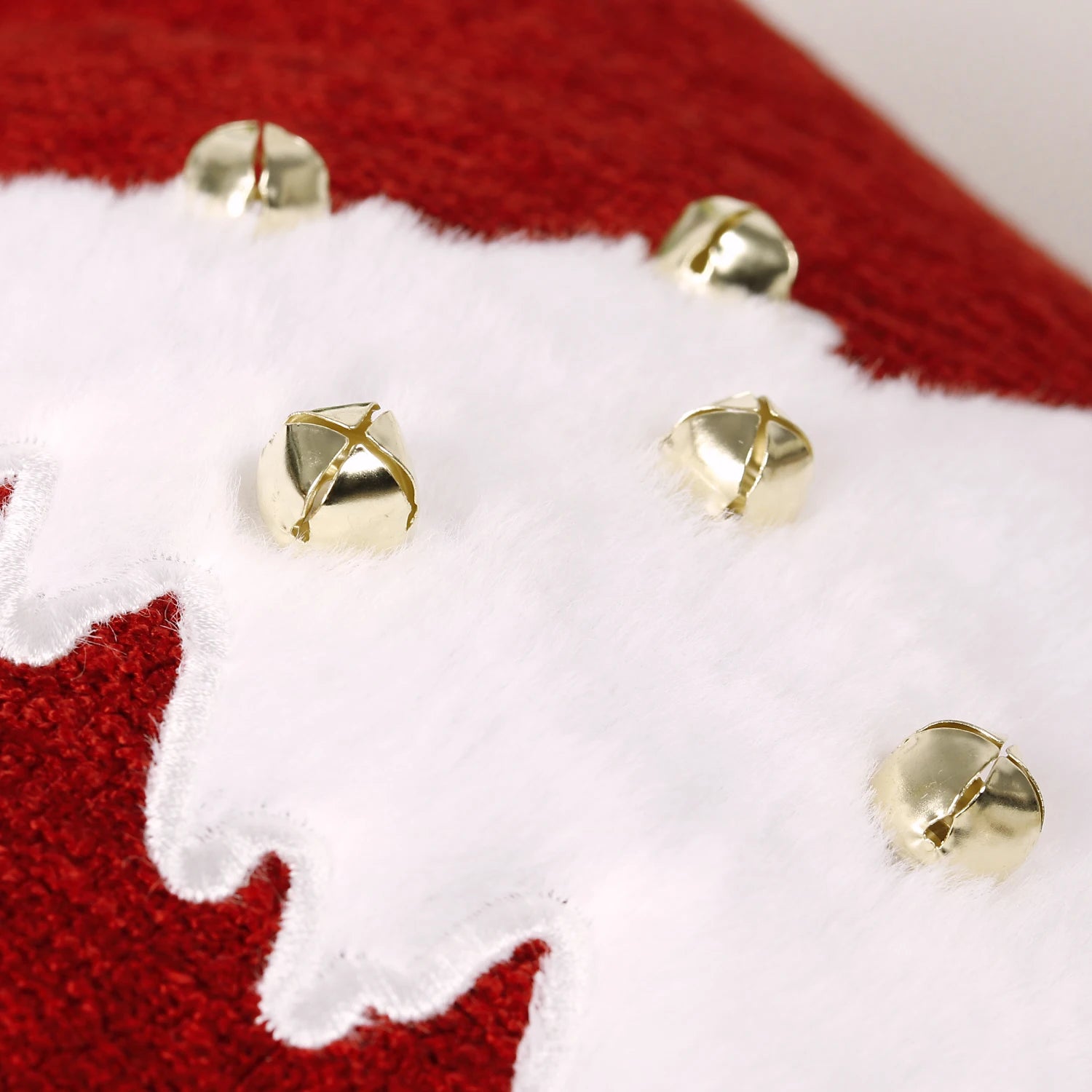 Add festive elegance with golden shimmer. This exquisite embroidered Christmas tree pillow cover features golden bell details that catch the light beautifully, creating a luxurious holiday atmosphere.