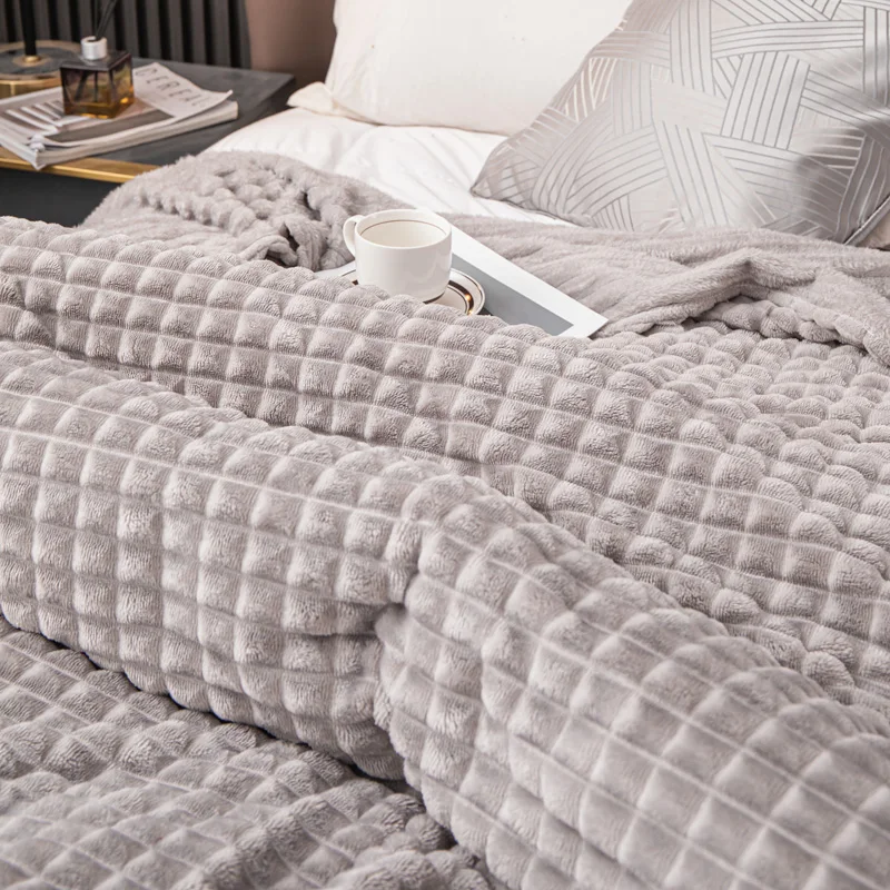 Paloma Elegant Plaid Knit Throw Blanket - Ultra-Soft Faux Rabbit Fur