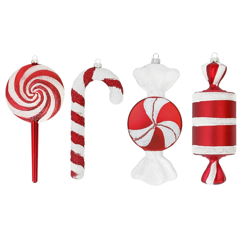 Terra Large Christmas Lollipop & Candy Cane Ornaments - Red Holiday Tree Decorations